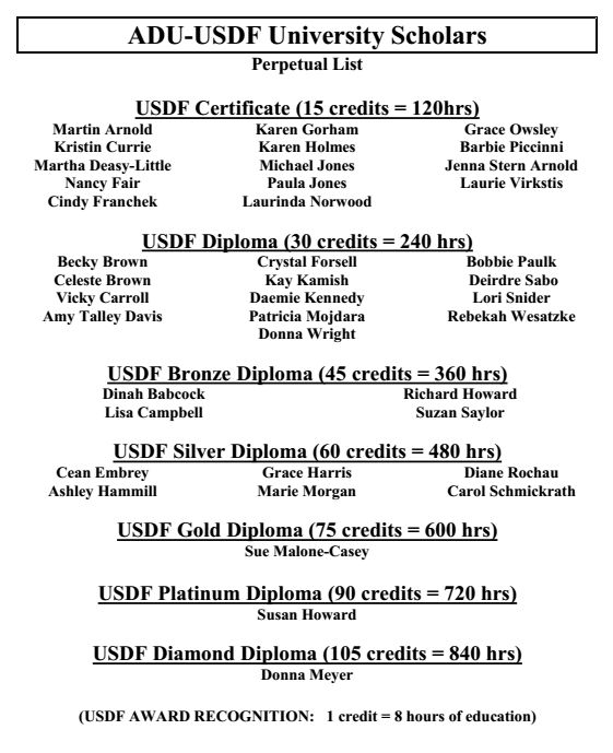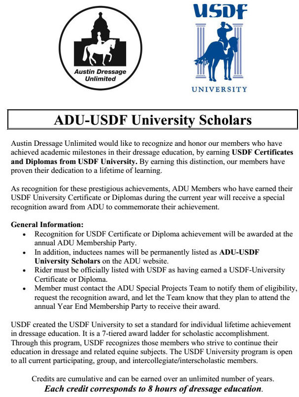 For additional information contact the USDF University Liason at 859-971-2277 or